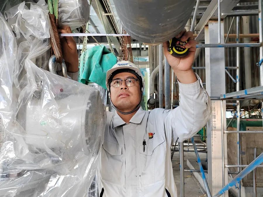 在20万吨/年乙烯基新材料项目配套供汽工程现场,海湾设计院乙烯基新材料等项目配套供汽工程项目负责人韩光磊正在组织海湾化学热电厂、监理单位、相关施工单位讨论优化锅炉的吊装方案。鉴于现场已经布置了两台塔吊,为了保证水冷壁这些大件设备一次吊装就位成功,韩光磊组织大家到现场实地核对400T履带吊车、辅吊的行进路线和站位。“准备工作越充分,细节考虑越精细,一次吊装成功的概率就会更高!”韩光磊说。