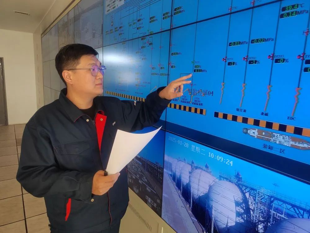 与此同时,另一艘外贸丙烯船也抵达港口,准备接卸1600吨丙烯。面对“一离一靠”的关键时刻,马群迅速制定出合理的调度方案。他与船员保持密切沟通,确保船舶安全靠泊和离港。在马群的精心调度下,丙烯船的接卸工作同样顺利完成。