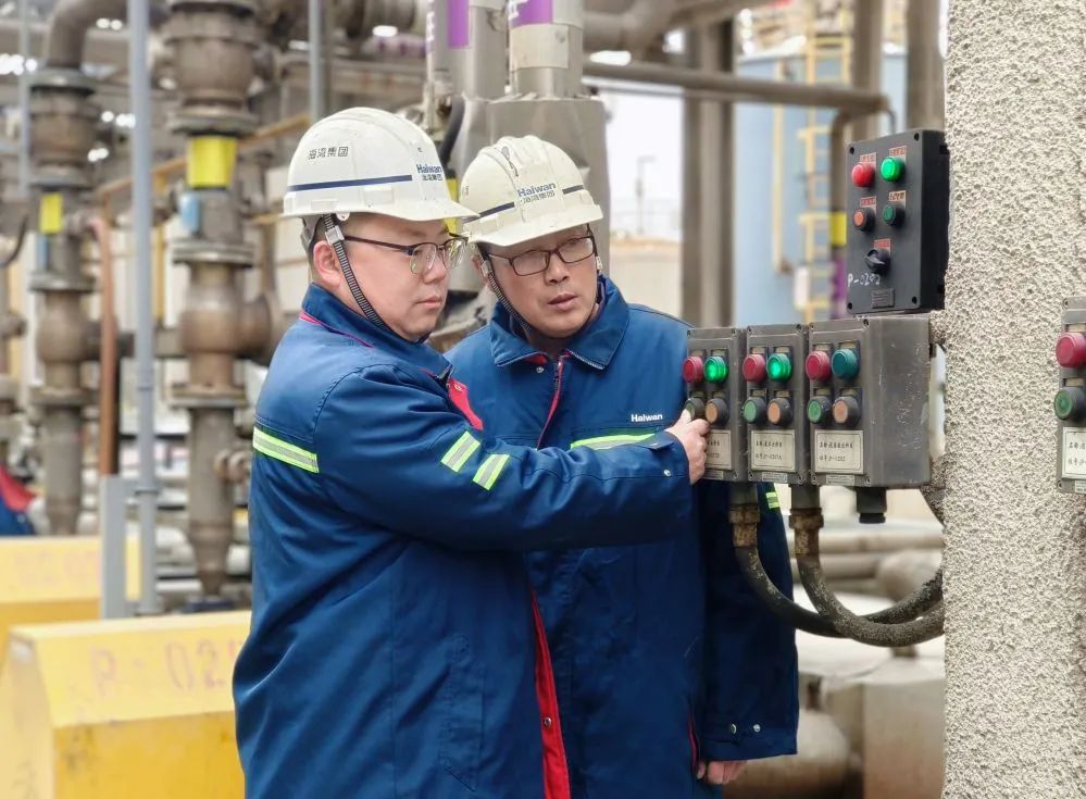 正月初五早上7时多,晨雾还未散开,海湾精化染料三厂值班长孙璐飞就已到岗,穿好工作服、戴好安全帽,开始了一天的工作。