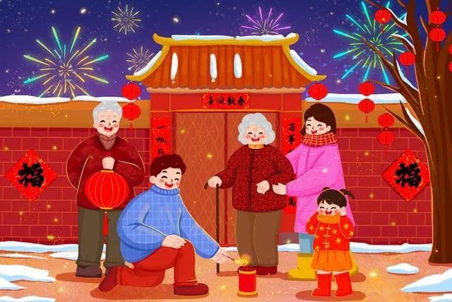 如果说腊月二十三的热闹稍显克制,那么除夕则是热闹的巅峰。除夕夜,一家人都在为年夜饭忙碌着,空气中弥漫着食物的香气,我们会穿上崭新的衣裳,满心欢喜地迎接新年。父母在厨房精心烹制美食,而我和兄弟姐妹则负责贴春联,红底黑字的春联,承载着对新年的美好期许,往门上一贴,新年的氛围瞬间就浓了起来。年夜饭前,必不可少的环节便是燃放鞭炮。小时候,我对鞭炮真是又爱又恨,那噼里啪啦的声响,既带来惊喜与兴奋,又让人忍不住心生畏惧。那时候家家户户都不甘示弱,比着看谁放的鞭炮更响亮,似乎鞭炮声越响,来年的日子就越红火。