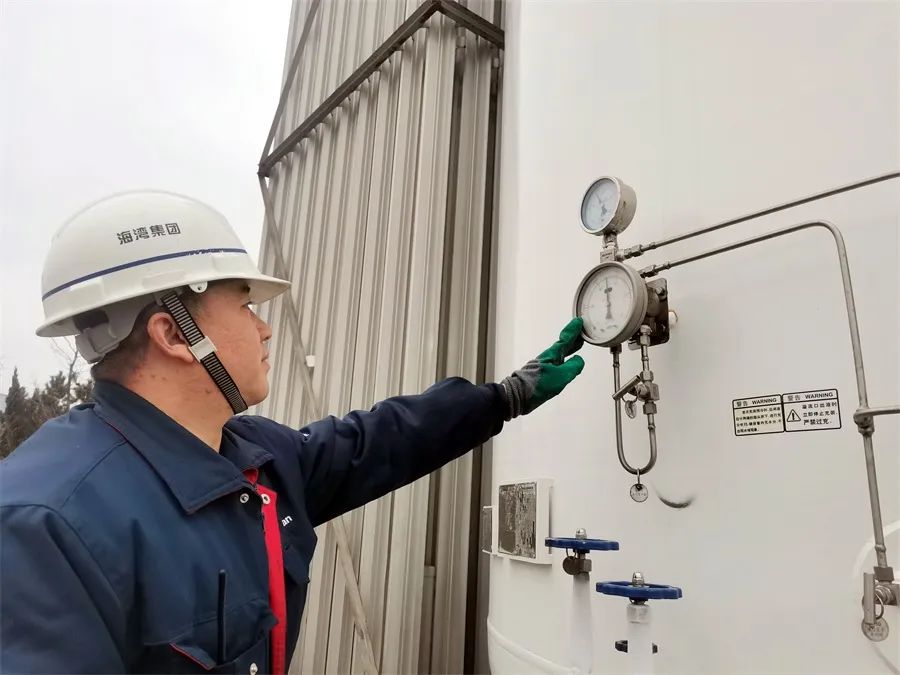 海湾索尔维生产运行部丙班员工正在检查液氧。姜仕晓 摄