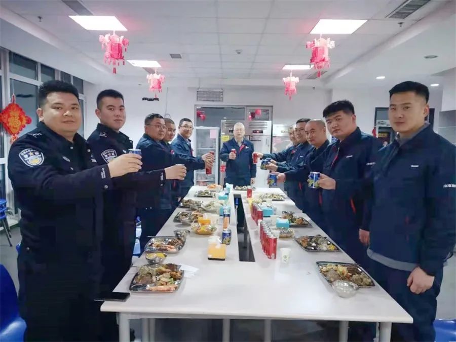 海湾港务值班领导与在岗职工共享年夜饭,共同迎接新年到来。万国鑫 摄