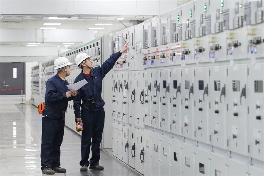 海湾化学员工巡检电气设备,保障装置供电。张翔钧 摄