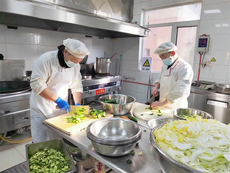 碱业发展住商肥料(青岛)公司餐厅师傅们正在制作丰盛的节日饭菜。李美佳 摄