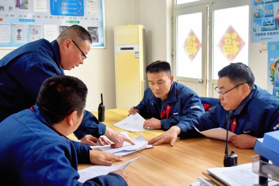 海湾精化化工一厂员工正在对裂化工艺参数进行探讨。呼扬春晖 摄