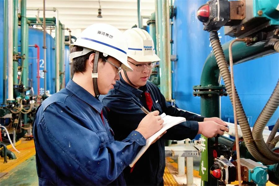 海湾精化热电厂员工正在反洗多介质过滤器,保证设备稳定运行。呼扬春晖 摄