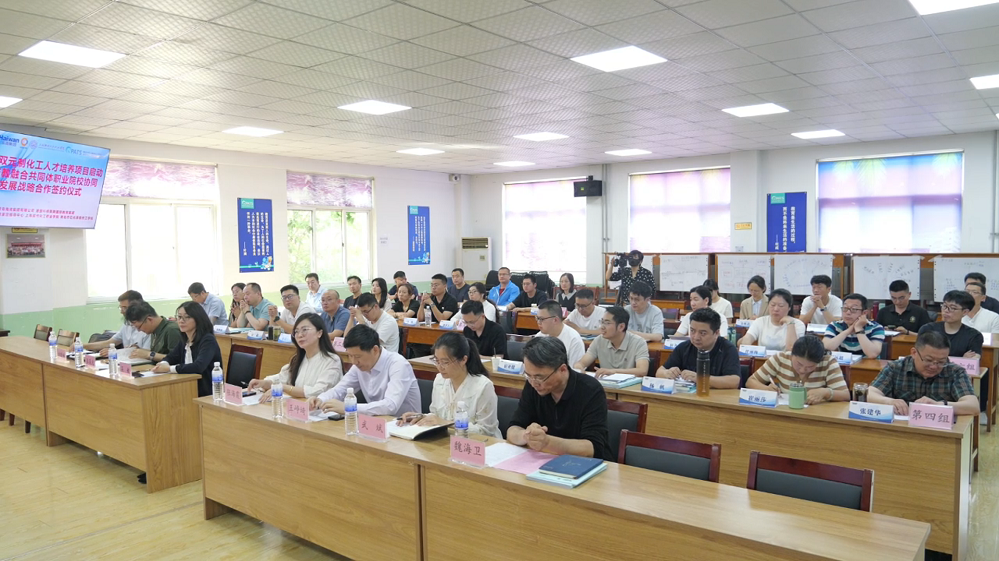 在大家的共同见证下,上海现代化工职业学院党委书记高炬、石化高技校校长刘敬峰签订产教融合共同体职业院校协同发展战略合作协议。