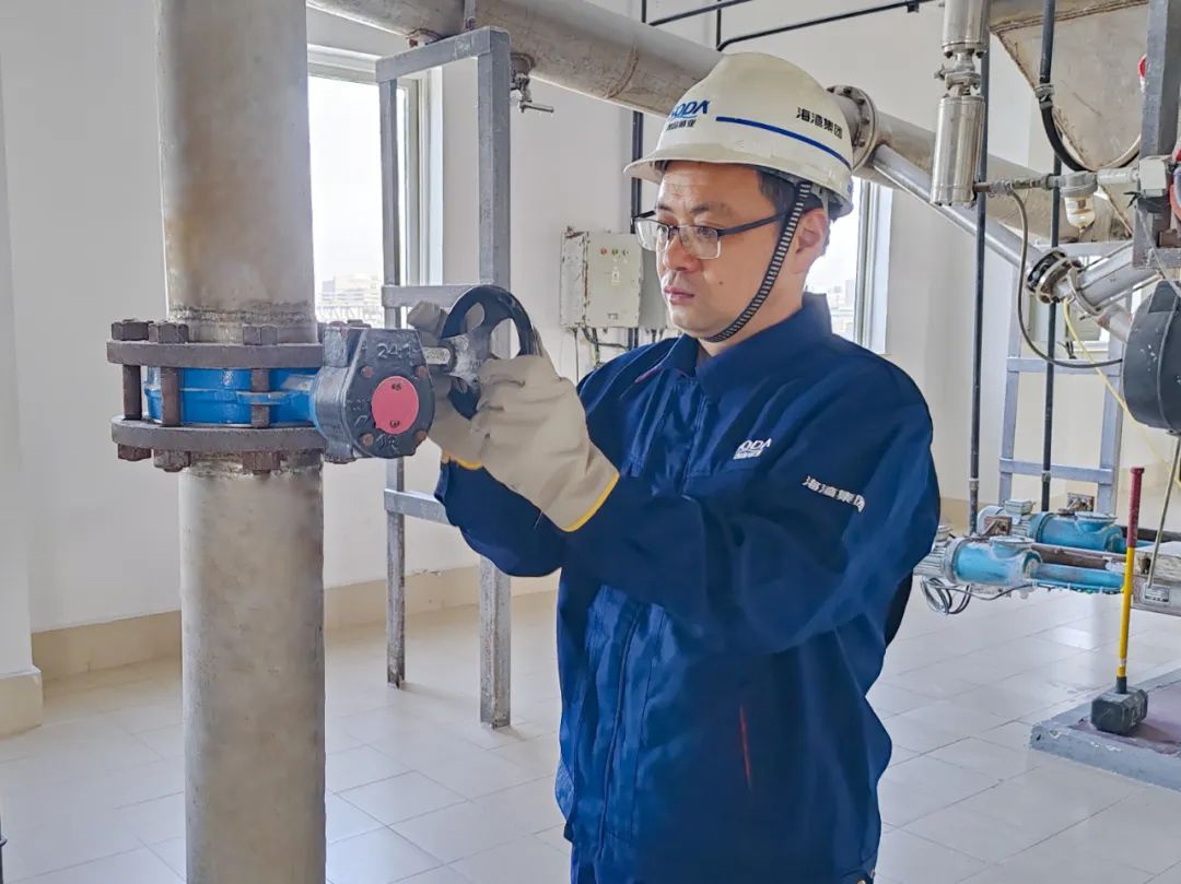 凌晨四点,海湾化学氯乙烯装置区的灯光刺破夜幕,邵龙已经站在反应塔前,工艺调试正在开展。“再降2℃!”他盯着手中测温枪上跳动的数据,对身后紧攥扳手的班组成员打了个手势,“换热器阀门开度调15%,准备切泵……”