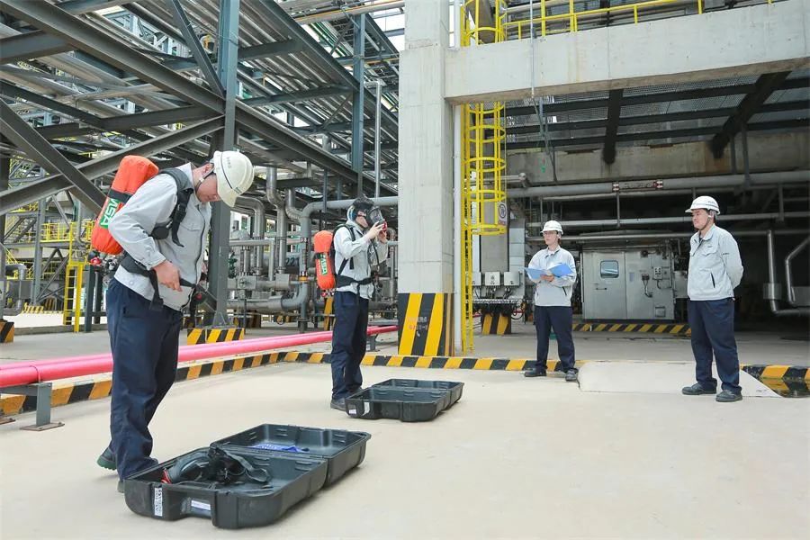目前,海湾索尔维正进行脱硫脱硝项目施工,每日开工前,全体安全员会严格按照规章制度,对所有流程进行一一审核检查。首先对高空拆除、动火焊接、受限空间作业等明确危险源,确保安全施工,施工前逐一确认人员的劳保用品是否穿戴,防坠器、防毒面具等佩戴情况是否符合规范,确保“不合格不入场”,用实际行动织密安全网。