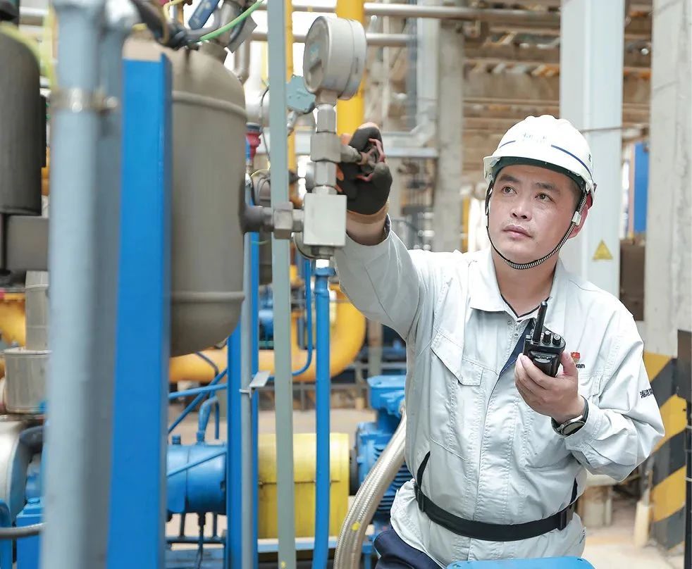 氯碱装置是海湾化学的龙头装置,离子膜电解是氯碱装置的核心设备,其运行情况直接影响全企业生产。一般离子膜的使用寿命为3—4年,于作甜从指标的控制、隐患排查到精细巡检,每一环节都制定严格标准,层层压实责任,强化执行。目前,工厂里的离子膜已经高效运行超9年,电流效率仍保持95%以上。