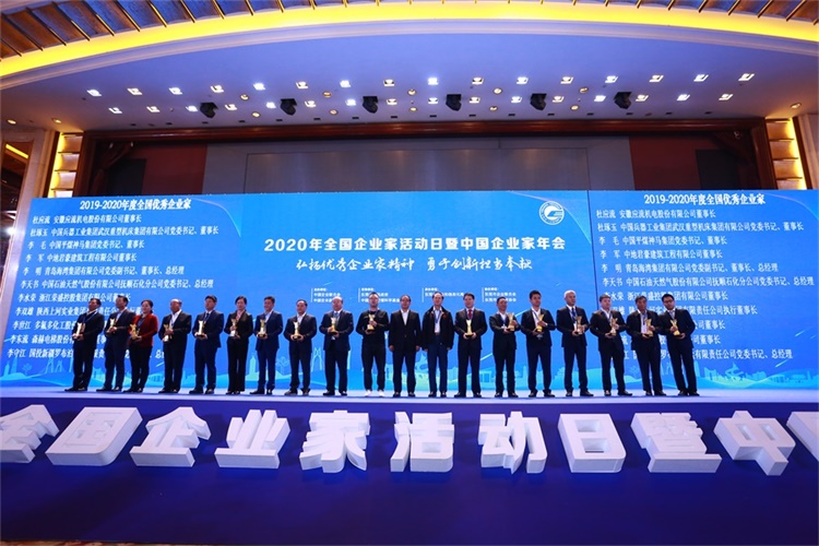 12月1日,由中国企业联合会、中国企业家协会主办,以“弘扬优秀企业家精神,勇于创新担当奉献”为主题的“2020年全国企业家活动日暨中国企业家年会”举行,会议对2019—2020年度全国优秀企业家进行表彰。青岛海湾集团董事长、总经理李明荣获“全国优秀企业家”称号。