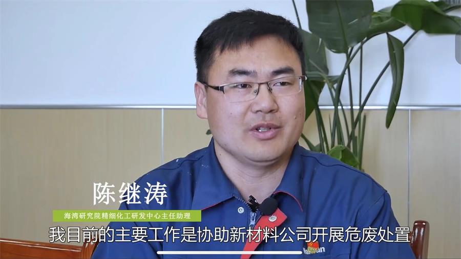 陈继涛,2015年光荣加入中国共产党,2019年参加工作。他,是一名默默无闻的科研人,深扎稳打肯劳肯干,坚守着研发人的初心。他深耕危废处置与资源化利用领域,深入企业生产一线提供技术支持,致力于将危废处置更加绿色生态,执着地在危废中“淘宝”,以实际行动践行绿色发展理念,为助力生态文明建设贡献“海湾力量”。