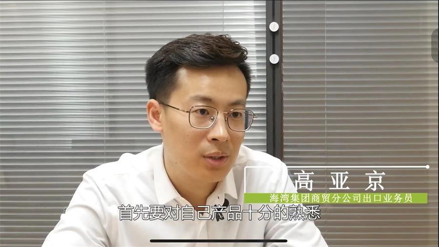 高亚京,2015年参加工作,2014年加入中国共产党,现为海湾集团商贸分公司出口业务员。面对复杂多变的国际市场,他认真钻研产品优势,积极开拓新市场。秉持“客户至上,互利共赢”原则,他协助客户分析市场情况,及时为客户解决问题,为客户提供定制化产品和服务。在他的努力下,许多新客户转变成忠诚客户,他助力海湾集团产品走向世界,为海湾品牌树立良好的国际形象。