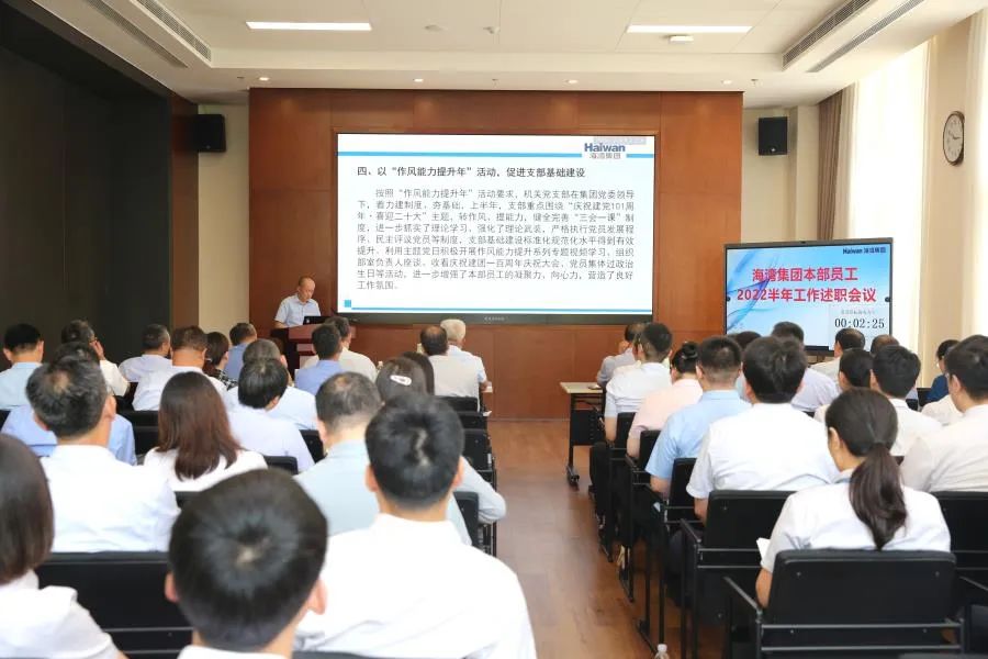 为进一步激发本部员工干事创业激情,持续提升工作业绩,营造比学赶超、勇争一流的浓厚氛围,7月18日,集团本部组织开展2022半年工作述职会议,中层干部及本部全体员工共60人参加述职。
